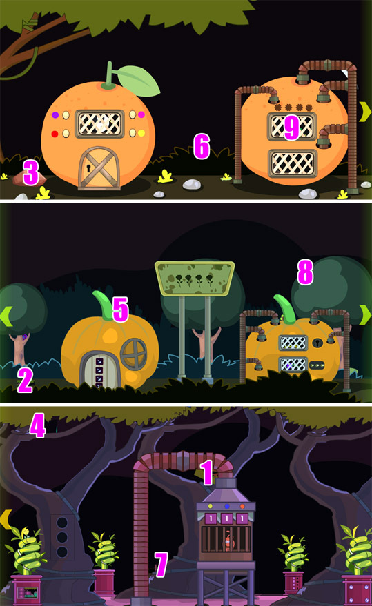 在山洞人生活过的森林里,你发现了一只罕见的野猫被关在了笼子里,现在要想办法寻找一些隐藏的有用物品来解决难题救出野猫吧